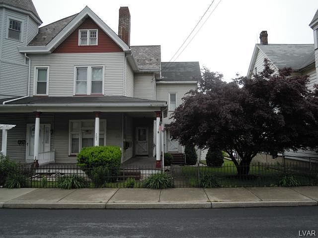 Home is the former Horlacher Mansion. Home is now a twin but still has large rooms with lovely woodwork and high ceilings. Great detached 40X25 garage with electric and attic storage could accommodate 5 cars makes this a perfect car Buff delight. Large 3 bedroom Slatington home with hardwood floors and 1.5 bathrooms. Modern eat in kitchen and separate dining room. Tons of storage in property and large unfinished walk out basement. Home has beautiful covered wrap around porch and wrought iron fence in front of home. Schedule your showing today.
