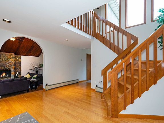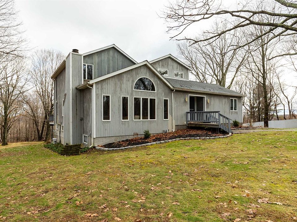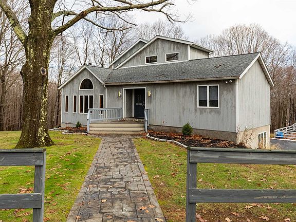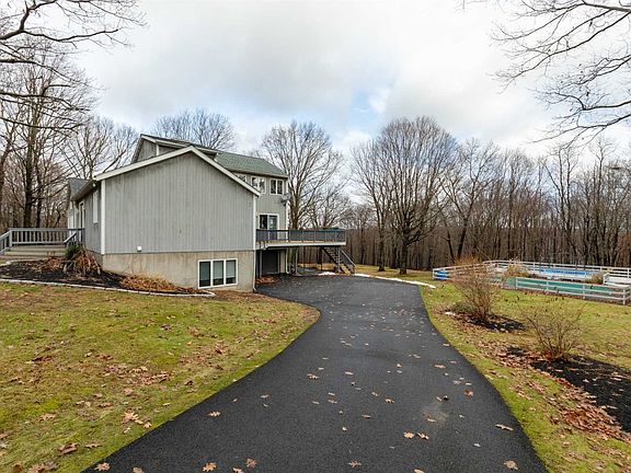 DON'T BE FOOLED BY NUMBERS! THIS VERY SPECIAL AND VERY UNIQUE PRIVATE 1+ BEDROOM, 3 BATH CONTEMPORARY REALLY PRESENTS LIKE A 3-4 BEDROOM HOME. PRIVATELY AND BEAUTIFULLY NESTLED ON ALMOST 5 ACRES, THIS HOME IS A SURPRISE PACKAGE. DOUBLE FRONT DOORS LEAD TO A LARGE FOYER AND A HOME THAT IS FULL OF LIGHT AND HAS AND A FLOOR PLAN THAT FLOWS EFFORTLESSLY. THE MAIN LEVEL INCLUDES A SUNKEN LIVING ROOM WITH VAULTED CEILINGS AND A BEAUTIFUL FIELDSTONE FIREPLACE. A FORMAL DINING ROOM AND A LARGE, NEW UPDATED KITCHEN WITH ALL THE PERKS AS WELL AS A BREAKFAST AREA THAT LEADS OUT TO THE NEW WRAP AROUND DECK WITH VIEWS OF THE YARD AND INGROUND POOL ARE ONLY THE BEGINNING FOR THIS FABULOUS HOME! THERE ARE TWO ADDITIONAL ROOMS ON THE MAIN LEVEL WHICH HAVE BEEN USED AS A STUDY AND BEDROOM AS WELL AS A FULL, UPDATED BATH AND LAUNDRY. THE ENTIRE UPPER LEVEL CONSISTS OF THE OPEN AND SPACIOUS MASTER ENSUITE WITH VAULTED CEILINGS, CHANGING ROOM, A FULL LARGE MARBLED BATH WITH JETTED TUB AND A PRIVATE BALCONY OVERLOOKING YARD AND POOL.THE LOWER LEVEL IS ANOTHER SURPRISE AND CONSISTS OF A LEGAL KITCHENETTE, FAMILY ROOM, RECREATION ROOM, FULL BATH AND WALK OUT SLIDERS AS WELL AS STORAGE AND GARAGE ACCESS. THE LOWER LEVEL IS PERFECT FOR THE EXTENDED FAMILY OR ANYONE NEEDING SOME PRIVATE SPACE.THE HEATED INGROUND POOL IS UPDATED WITH IT'S OWN DECKING, NEW ROOF, CENTRAL VAC, GLEAMING HARDWOOD FLOORING, TONS OF CLOSETS AND STORAGE, NEW WINDOWS AND NEWER FURNACE AND A/C SPLITTER ON TOP FLOOR COOLING THE WHOLE HOUSE. BOTH THE FIREPLACE AND GRILL ARE HOOKED INTO PROPANE. THE HOME IS LOCATED CLOSE TO MAIN ROADS AND HIGHWAYS AS WELL AS ALL AREA AMENITIES YET IS TUCKED AWAY IN A VERY QUIET LOCATION. PERFECT FULL TIME, EXTENDED FAMILY OR A WEEKEND GETAWAY.