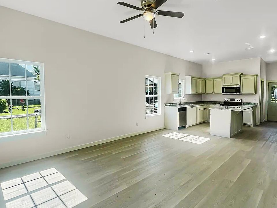 The open-concept living area provides a seamless flow from the living room to the kitchen, making it great for entertaining or unwinding after a busy day. The kitchen features stainless steel appliances, clean finishes, and a smart layout that supports both everyday convenience and weekend cooking adventures.