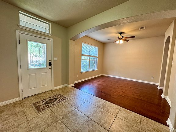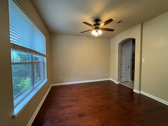 Enjoy living in this lovely one-story home in a central location- Ranch at Brushy Creek. The home features 4 Beds, 2 Baths and flex space. Well designed open layout great for entertaining. Tile floor through foyer, kitchen and living room. Wood floors in the office space and bedrooms. Walls of window with tons of natural light. Well appointed kitchen boasts stone surround around cooktop, granite counters, large island, stainless steel appliances and abundant cabinet space. Large coved patio area in the backyard. Located in the highly acclaimed Round Rock ISD. The home is located within minutes of shopping/restaurants at 1890 Ranch & within walking/biking distance to several parks, amenities, and trails. Close to all major tech employers including the new 50-acre Apple Campus. The community has two pools and a basketball court and is close to Brushy Creek Park. FRIDGE INCLUDED. General Lease criteria