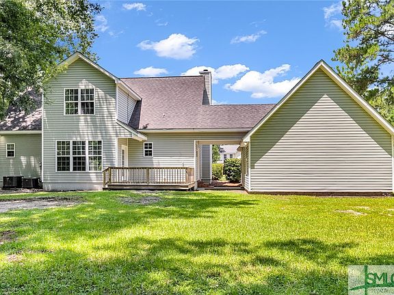 4 bedroom 2 and 1/2 bathroom home with detached 2 car garage on large lot in Midway, GA. Front rocking porch with ceiling fans. Freshly painted with new carpet. Master bedroom is downstairs with soaking tub, stand-up shower, dual vanities and large walk-in closet. Formal living room with fire place. Eat-in kitchen overlooks backyard with built-in desk. Side entry door leads from garage into laundry room. 3 bedrooms located upstairs with shared bathroom.