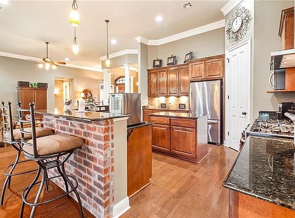 Beautiful Custom Home on oversized 3/4 Acre lot In Willow Bend Subdivision/Madisonville. This single story has 4 bedrooms and 2.5 baths + an office. Chefs dream kitchen that opens into den, dining and breakfast rooms. Fabulous brick island with room for 6 barstools, stainless appliances, granite counters, pantry, and high ceilings. Spacious master suite with wood floors. Exterior has lush landscaping, covered patio, and rear yard access. Convenient location and access to Interstate 12. 1% buyers incentive.