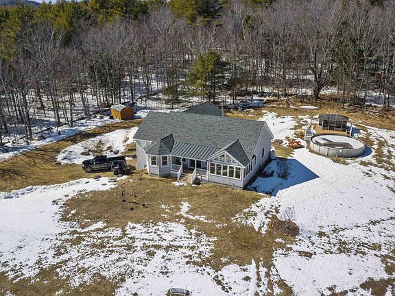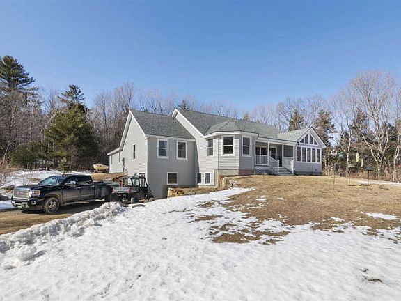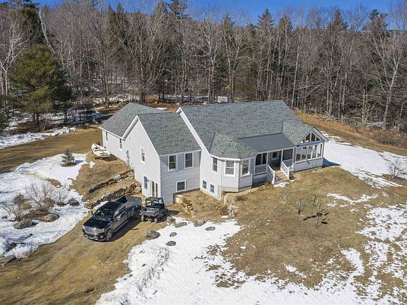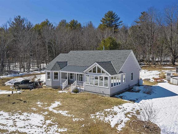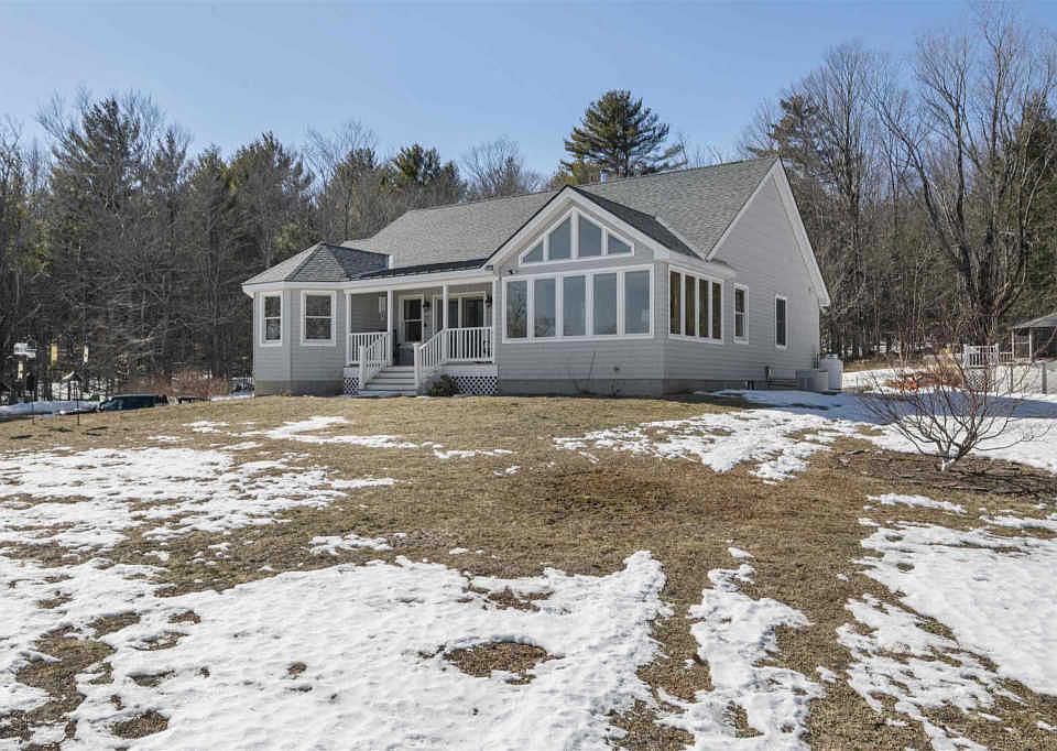 Tucked away on 12 acres off a quiet country road welcome yourself home to this low maintenance, 2-bedroom ranch. Pull up the driveway, pass by your multiple garden beds and the gambrel shed to your two-car attached garage. Enter directly through the garage or back door into your mudroom with built-in bench and storage space. The spacious master suite is abundant with natural light with French doors leading to the vaulted 4-season sunroom with peek a boo views of the mountains beyond. Surrounded by windows and beautiful wood beams this room also connects to the main living area with vaulted ceilings and open kitchen/dining space. The dining area has 180-degree views to the outdoors with wood bead board ceiling. A 3 bedroom-septic allows for the office to be used as additional sleeping space or potential for expansion. The second bedroom is bright with walk-in closet and direct access to the second bathroom. The entire first floor is all handicap accessible. The walkout lower level has the option to be used for storage space or the potential to be finished off for additional living space. Enjoy the hot tub right off the back door or head over to the above-ground pool accompanied by a beautiful composite deck and cabana. A standby generator also provides peace of mind. Take advantage of the country setting with access to Concord and just 10 minutes to Laconia. Just a few miles to Manning Lake, a beautiful 201 acre lake for exploring.