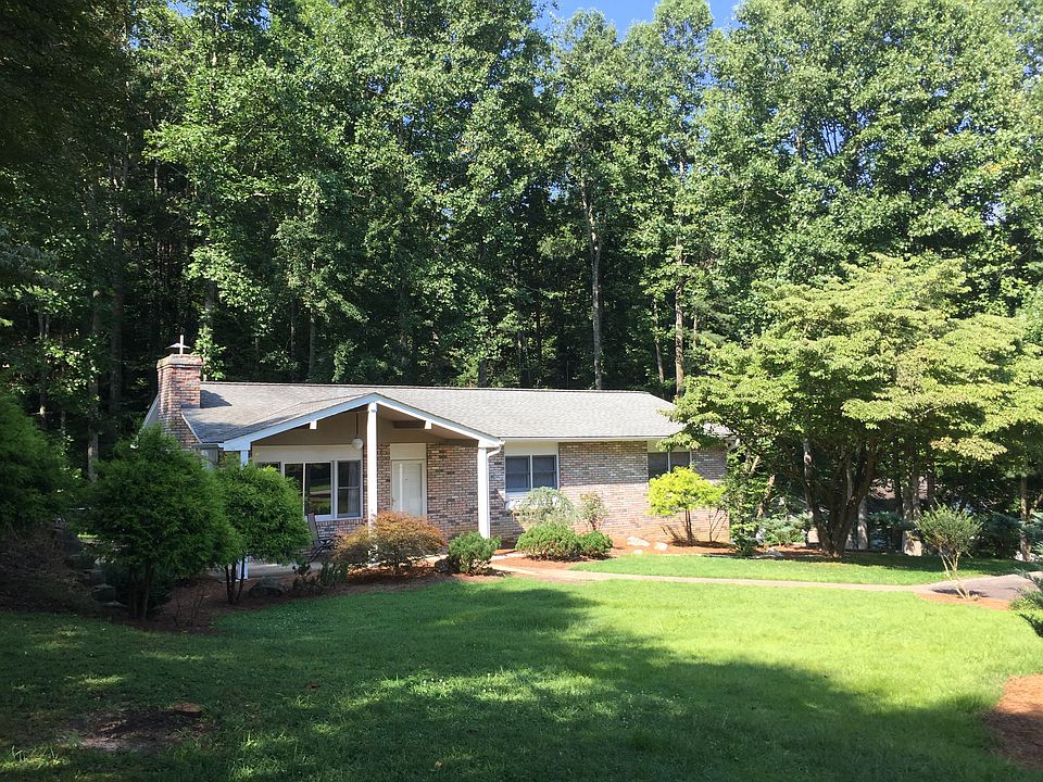 Well maintained one level home w/full unfinished basement. Living room w/brick fireplace, tiled kitchen w/convection oven, new laminate flooring in living/dining/bedrooms, three bedrooms, fenced back yard, two car garage in basement + unfinished space great for storage, workshop, etc. Light, bright & freshly painted interior. Ideally located between Brevard & Hendersonville! Property adjoins a private road.