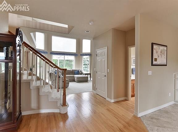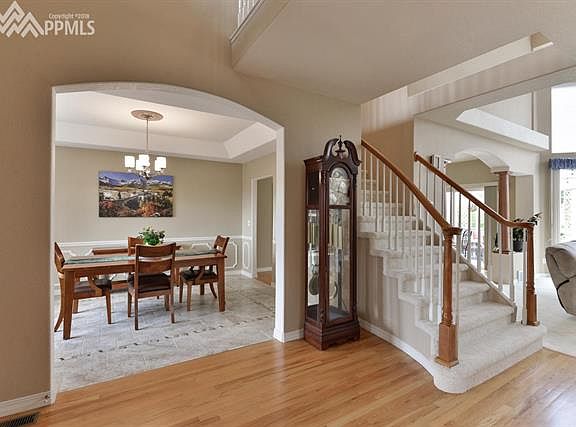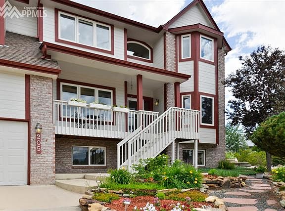 Gorgeous updated home on a quiet cul-de-sac in a great neighborhood with views of Pikes Peak & the front range from the front of the house as well as the front deck. The deck has plenty of space to sit and drink your morning coffee or watch the kids play! The main level of this home features wood floors in the entry, kitchen, and the kitchen eat in area. The office has built in shelving, a bay window and tons of light while the dining room on the other side of the entry has custom moldings and a coffered ceiling. The large open family room has vaulted ceilings and a wall of windows to enjoy the views of the backyard. The updated kitchen has a granite counters, a custom tile backsplash, wood floors, stainless steel appliances, pantry, and a large eat in area that walks out the back. The upper level of this home boasts a large master suite with a walk-in closet, attached five piece bath with a jetted tub, a private balcony off the back and a large sitting area at the front of the house to enjoy the stunning views and sunsets. Also located on the upper level are three additional bedrooms and a full bath with a double sink vanity. The lower level has a second family room/media room, 3/4 bath, and large storage area/work shop. You will love the huge park like backyard with a patio and pergola, a large 12 X 12 storage shed, meticulous landscaping. So many upgrades and attention to every detail make this a special place to call home!