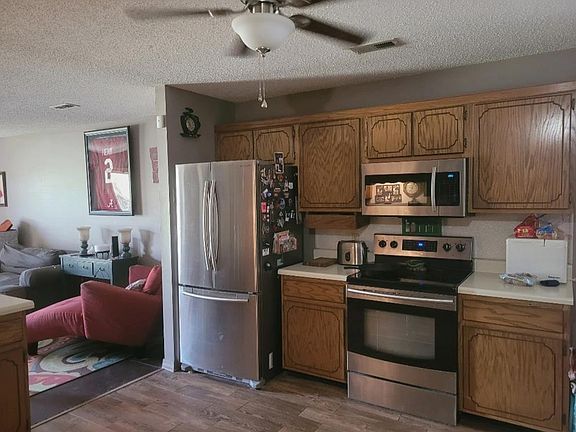 3 Bed/ 2 Bath. This neighborhood home may be the perfect fit for an Individual or Small family. 3 Bedrooms and 2 FULL baths provide functionality many are seeking in today's market. Take advantage of the appliances conveying with the property, including the Refrigerator and Washer and Dryer. The wood plank ceramic tile brings a hint of modern rustic style throughout the kitchen and dining area. An extended driveway spans the full depth of the lot and leads to a double carport and carport storage room that are tucked on the back side of the house; offering a bit of privacy. Notice the Master Bedroom and Bathroom boast 2 separate small walk-in closets. A large attic allows great space for storage and has 2 separate access locations. A conveniently-sized outbuilding conveys with the property serving as extra storage. Call today and schedule a time to see this property!