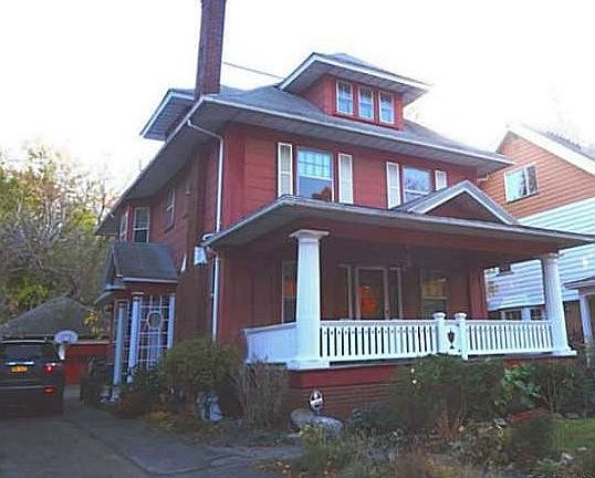 Gorgeous side entrance Colonial located on one of Rochester's most renowned historic streets. Natural trim thoughout! Charmingly refinished hardwoods throughout the first floor. Breakfast nook! First floor bedroom/office/den with powder room! Enjoy the private front porch! Three bedrooms up with large master with master bath! Enclosed and heated porch on the second floor. Finished attic for possible fifth bedroom! Full dry basement with lots of storage space! Hot water heat! Private deck in the backyard surrounded by beautifully maintained landscape and a coy pond! Two car garage. Come check it out! This one's a 10!