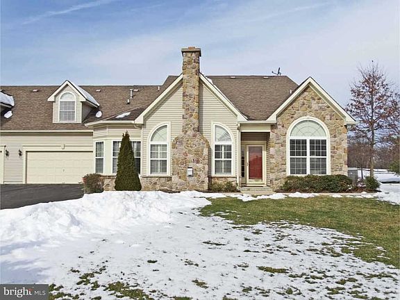 Welcome home to this highly desired 55 Plus community of the Villas at Shady Brook! This exceptional expanded Willow model boasts immaculate, move-in condition, volume and 9-foot ceilings, and neutral upgraded decor throughout. No need to sacrifice living space and beautiful water views whilst enjoying a wonderful resort-like lifestyle. Convenient location is near restaurants, shopping, medical facilities, towns and easy access to major cities. Enjoy an open floor plan from the foyer leading to living/dining rooms, both with hardwood floors and cathedral ceiling, and a 27' kitchen. The living room offers a gas fireplace with Mt. Vernon mantel, flanked by shutters windows topped with quarter-moon windows, and eyeball lighting. The dining room offers a handsome chandelier. The eat-in kitchen with large sun-drenched breakfast room (8 shuttered windows!) boasts abundant granite counter space and upgraded bisque cabinetry, under-cabinet lighting, tiled backsplash, tiled floor, pantry, under-mount sink with gooseneck faucet, and recessed lighting. Whirlpool Appliances include a refrigerator with bottom freezer, gas range, built-in microwave, dishwasher, plus disposal. Move through the kitchen to a full-sized laundry room with utility sink, closet, and access to the 2-car garage, also with large storage closet. A roomy den with neutral carpet features sliding glass doors leading to a 10' x 20' paver patio with retractable awning overlooking open space, pond, and fabulous view of Shady Brook Farm, especially at holiday time! A spacious en-suite main bedroom with tray ceiling and fan boasts a tiled full bath with double comfort-height bisque vanity, soaking tub, shower, and linen closet. Completing the first level is a 2nd bedroom (currently used as an office), tiled hall bath with pedestal sink, linen and coat closets. Upstairs discover a 3rd over-sized bedroom with full bath, full wall of clothes closets, utility closet, and access to partially floored attic for loads of storage. Clubhouse amenities include indoor and outdoor pools, tennis, gym, game rooms, and a myriad of activities. Association fees include CAM, lawn care, trash and snow removal, and roof replacement. Also worth mentioning: new state-of-the-art Carrier HVAC with efficient humidifier; upgraded thermostat; newer water heater with electronic ignition; alarm system with central-station monitoring and off-site controls; and custom shutters. Will I see you at the closing table?