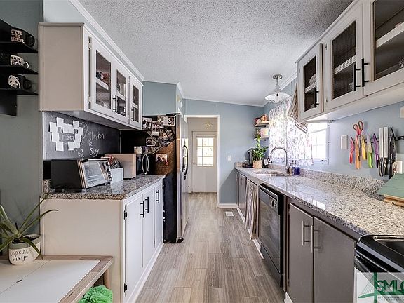 Experience comfort and convenience in this delightful mobile home on a permanent foundation, perfectly located in Rincon, GA. Just 15 miles from Savannah and close to Gulfstream and GA Ports Authority, this home sits on a large corner lot with a fully fenced yard. Inside, the family room features a stylish shiplap wall accent, adding a touch of modern rustic charm. Enjoy a spacious primary suite with an en-suite bathroom, featuring a separate tub and shower, and a large walk-in closet. The private sun porch overlooks the serene backyard, ideal for relaxation. The kitchen is equipped with granite countertops, enhancing the home’s appeal. With its proximity to shopping, dining, and more, this property offers a lifestyle of ease and accessibility. A perfect blend of privacy and convenience awaits!