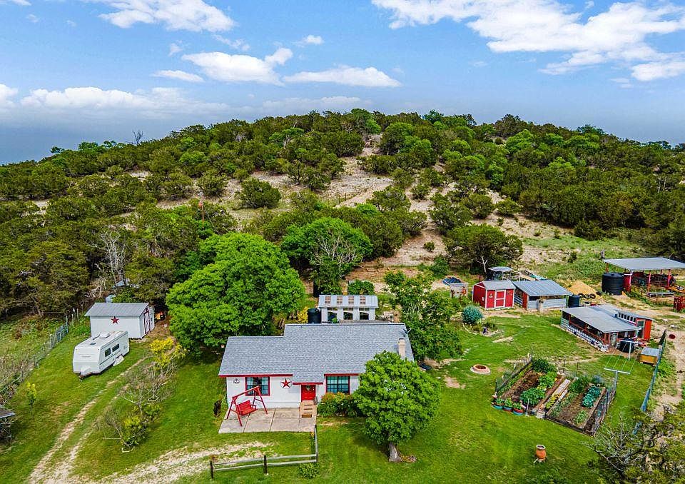 Over 9 1/2 Ag Ex Acres. Hunting allowed. New roof (2020), recently painted exterior & new well pump (2021). Bonus room could be 2nd living. Several patios (covered & open), 30x30 high fenced garden w/water, greenhouse, and composting area. 480' +/- foot well & rainwater collection system. Chicken & quail coops, 3-stall pole barn, storage w/covered area for equipment & 2-car CP. 1/2 mile walking path around the cedar-cleared property. Gentle rolling terrain w/hilltop views (1840' elev), level areas & seasonal pond in the rich, fertile valley. Great cattle, horses or 4-H projects.