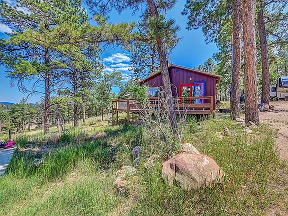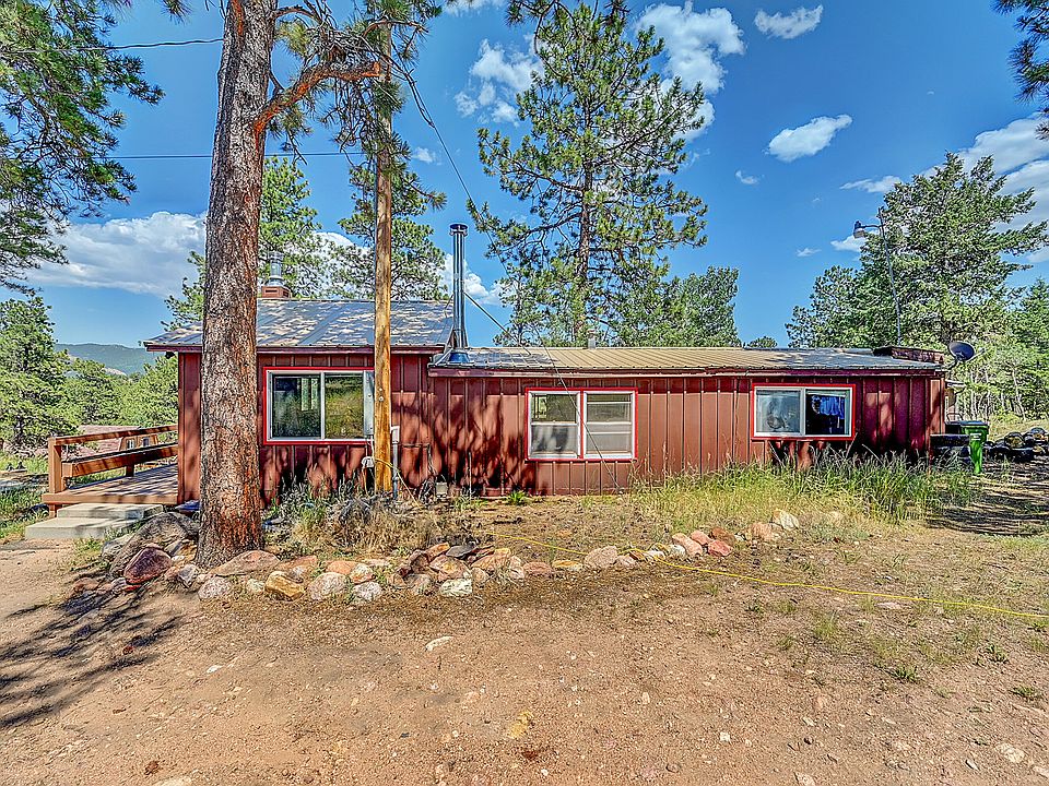 This charming and completely renovated 1+ bedroom home is located in a quiet neighborhood at the end of the road. It features stunning views, beautiful wood floors, wrap around deck, and a cozy wood-burning fireplace. The property also includes two sheds and a barn for additional storage. Enjoy the convenience of a washer and dryer, RV parking, and a fantastic workshop/man-cave located on the lower level. The home is within walking distance to RTD services. **Directions Please do not take Sioux Trail. From the stoplight on Highway 285, turn right onto Mount Evans Boulevard, then make a left onto Pima Trail. Continue straight until you reach the end of Pima Trail; the driveway is the last one on the left. Call me if you have any questions.