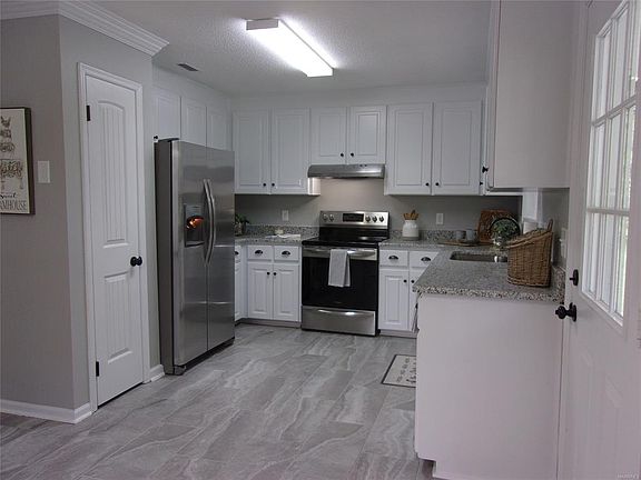 This almost 2100 sq ft family styled REMODEL has it all! Great curb appeal with mature trees & covered front porch. Two large living spaces with beautiful laminate flooring. Brick fireplace & elegant crown molding & wood floors in front living room.20' x 20' converted garage with laminate flooring will make a great family entertainment space, whether a pool room, work out space, theater or kids play room, this room can be just whatever you choose. Beautiful white eat in kitchen has all new stainless appliances, granite counter tops, pantry, and fabulous tile flooring. Master suite has appealing bay window front, double sinks in granite tops, oil rubbed bronze fixtures, custom mirrors, large tiled shower, & good sized walk in closet. Hallway gives access to second bath with all new fixtures, 2nd bedroom with laminate flooring, & large 3rd bedroom with new carpet & walk in closet. New HVAC, windows, lighting, flooring, interior paint, cabinetry, interior doors, appliances, exterior siding, etc! You will love the low maintenance exterior. Four entrances from home to outside will make this a fabulous place to entertain! Large mostly fenced yard has areas of constant shade. Wooded area behind property lends privacy. 20'7 x 18' 6 detached garage (with opener) has a 146 sq ft bonus room (not included in the 2087) behind it with french doors to the back yard. Great for hobbies, workshop or just extra storage. 12' x 12' covered porch that opens into kitchen also makes entertaining easy! You are going to LOVE this place!
