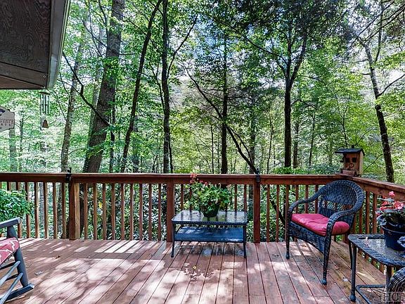 Stop the search, this is the one! Tranquil setting on two wooded lots and one pristinely up kept home. This FURNISHED 2 bedroom/2 bath home is the perfect escape from it all. Updated with hardwood flooring in main living area, granite countertops and new stove in kitchen, and bathroom remodels in 2020. Enjoy the sounds of the water rushing over the dam on Big Creek, just across the street from the home. Decking wraps almost all the way around the home, so you can enjoy the wooded views and have easy access to the garden area. Don't miss this special home - give us a call today! ***Please note directions to the home: From Hwy 64, turn onto Flat Mountain Road. When you cross over bridge veer to the left onto Skyline Lodge Road. Take an immediate right onto Hemlock Drive. Follow Hemlock Drive up to first gravel road on the left (there will be a directional sign). Go down to bottom of road and home is on the left.