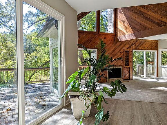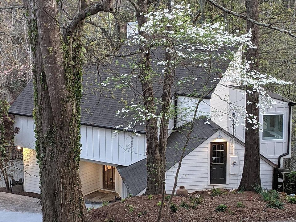 ** Available Nov 1st! ** Unique opportunity as this home is rarely available! Two main floors (3 bed, 2.5 bath) available November 1st. Two-car garage with ample storage space and drive court. Utilities to be paid by tenant. The lower apartment tenant contributes a flat $100/month. Pets subject to owner approval. This beautiful contemporary home overlooks the historic ruins of Roswell Mill, the Falls of Vickery Creek, and the Chattahoochee Forest. The renowned Atlanta architectural designer Earl McMillen designed and built the house with his signature style: open floor plan, high ceilings, panoramic views, and natural lighting. The home features wooden beams, old heart pine tongue & groove walls repurposed from one of the mills, known as Roswell Manufacturing Company, rebuilt after the Civil War in 1839. Recent whole-house renovations include new energy-efficient roofing, siding, insulation, doors, windows, kitchen appliances, flooring, and fixtures. The property is partially located in the Historic District and is just under 1 acre, comprised of two lots; the home sits on one of the lots, with a pond on the second. The pond is home to Koi and goldfish. It is currently under renovation with limited access. The first floor of the main dwelling features an open floor plan with an updated kitchen, dining room, powder bath, screened-in porch, and a great room with a fireplace, two-story windows, and sliding glass doors for a 180-degree unobstructed view of the Vickery Creek waterfall, rapids, and national forest. The upper level has three bedrooms and two full baths. The generous-sized owner's suite has three closets, a European shower, a garden tub, double sinks, and plenty of natural light. The basement has been converted into an accessory apartment (no access to the main dwelling) and is currently occupied by a single professional. 205 Sloan Street is within walking distance of several trails into the Chattahoochee National Forest, the covered footbridge in Old Mill Park, Roswell Square, a coffee house, a pub, and restaurants. And Canton Street is only 1.3 miles away! Here you can enjoy various local and nationally-known restaurants, cafes, breweries, and shops. Utilities and internet billed separately. No smoking permitted. Tenants must clean up after pets.