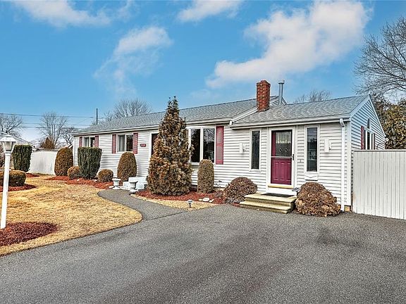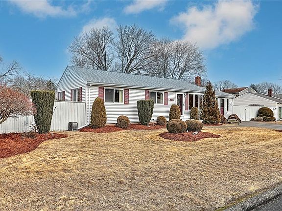 Super clean ranch with surprisingly spacious interior offers very flexible living spaces. Huge family room with vaulted ceiling and fireplace. Central kitchen with 9' sliders that open to a lovely screened porch and private yard. 3 generous bedrooms, updated bath, oak hardwoods throughout. Finished room in lower level is a fun hangout spot with a pool table and an oversized bar. Fairly recent roof, heat and AC. Andersen replacement windows. Situated nicely on a fenced corner lot with perennial gardens. Conveniently located to shopping, schools, airport and Warwick train station - MBTA & Amtrak. First time on the market in almost 45 years!