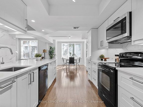 Elegant brick residenceLarge picture windowsClassic white eat-in kitchenBreakfast barAbundant cabinetryEnsuite bathConvenient in-suite laundry