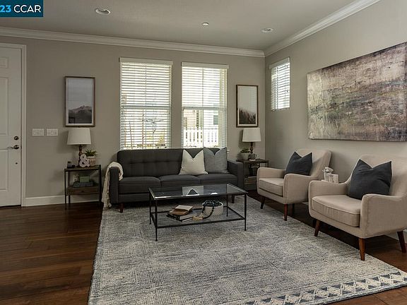Better than NEW! Built in 2015, immaculate, highly upgraded Paseos single family detached Planned Unit Development is ready for immediate occupancy. Open/bright floorplan, rich wood flooring, wall to wall carpet, breakfast bar, open kitchen with granite counter tops and custom backsplash, huge light-washed primary bedroom features walk-in closet, window treatments, extra storage, clear pest report, close to shopping, parks and freeways, washer/dryer and refrigerator stay.