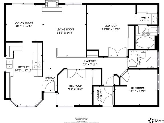 - Total interior livable area: 1,238 sqft
