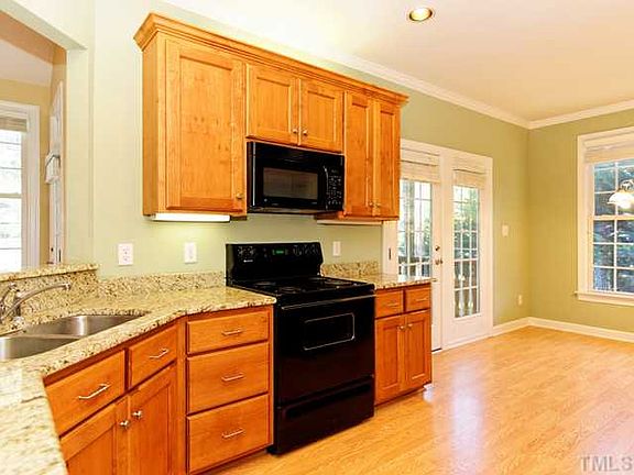 Charming ranch home in the heart of Wake Forest! Laminate floors, spacious family room with vaulted ceiling and exceptional eat-in kitchen with granite counters and plenty of custom cabinets! Screened porch and large deck overlook the big fenced back yard! 1 car garage, close to schools, shopping and resturants! Move-in ready!