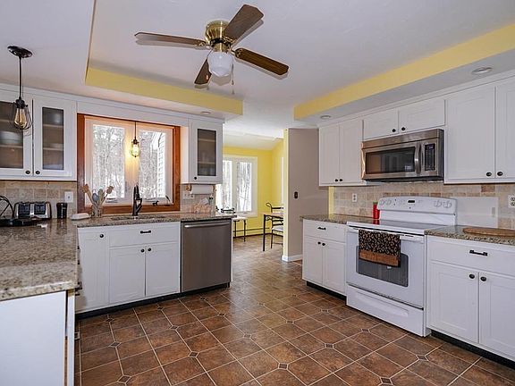 Beautifully updated bright and sun filled contemporary! Set back from the road in scenic West Hopkinton, enjoy this 3 bedroom in a desirable neighborhood setting. Well appointed features w/many improvements including recent roof, windows and freshly painted rooms. Septic recently completed, less than 3 years ago. Cozy living room with stone fire place. Cabinet packed kitchen which leads off to an outdoor deck area which overlooks the spacious yard and storage shed. This property is completed with a 2-car attached garage Within minutes to highway and train makes this an ideal location for commuters.