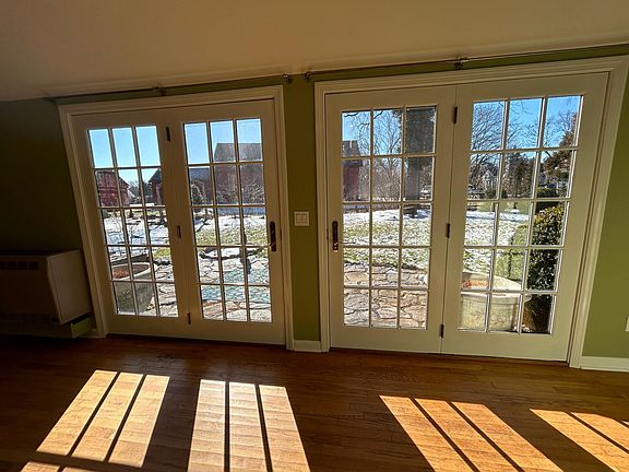 Spacious, quiet, airy studio apartment with beautiful sunlight and French doors opening onto large private patio, surrounded by charming, manicured garden with lily pond. Views on all sides to gardens and red colonial barns. Located in Guilford's Historic District just a short walk from the Green, you'll find the perfect combination of colonial charm and contemporary architectural flare. 650 square feet include multi-functional open living area with windows on three sides, with large reconfigurable wardrobes for clothing and storage; more intimate space to configure as you choose, separated from larger living area by elegant perforated wall; new kitchenette including countertop Wonder Oven (bake, roast, broil, air-fry, toast, reheat); and modern bathroom with pristine glass-walled shower, marble shower bench, and rain-shower head. Wood floors throughout, ceramic tile in bathroom; walls freshly painted. Gas heat to keep you toasty in winter; luxurious programmable floor heating under bathroom tiles; two window A/C units for warmer summer days; just open the French doors in spring and fall to feel like you're living in the garden! Supplementary electric generator outside the building means you never lose power in a storm. Private walkway and entrance, dedicated off-street parking space, and 10-minute walk to the Guilford Green. 20 minutes to downtown New Haven by car or Shoreline East train. Landlord lives in separate house at the front of the property (street view). Rental is a separate building at the back of the property (see photos). Owner pays for all utilities including gas heat, electricity, trash removal, and wifi. Dedicated off-street parking space. Shared garden access. 1-year lease preferred, 6-month lease considered Financials and previous landlord references required Additional $500 pet deposit required for cat or smaller dog No smoking
