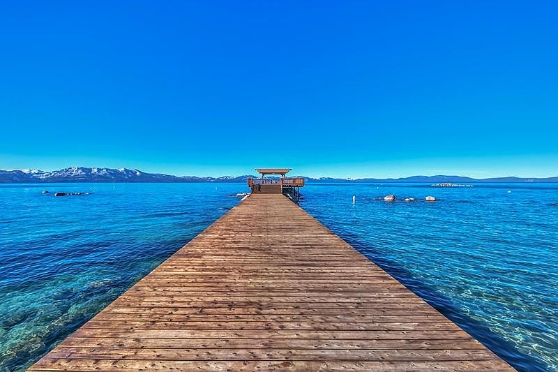 Enjoy living at Tahoe in the quintessential lake house. Located in Upper Lakeridge, this home offers wonderful views of the lake from the extensive wrap-around decking that surrounds the home. Further, you ll have full access to the private pier, gazebo, and beach. The home boasts hardwood flooring, two wood-burning fireplaces, two en suite bedrooms with a third bath located right beside the third bedroom. Sliding glass doors provide access to the deck from the upper-level master suite and the great room. The deck can also be accessed from the kitchen and another door in the great room. The front door leads to a beautiful level lawn and parking is plentiful. Available furnished or unfurnished, the home comes complete with landscaping. Owner pays for landscaping