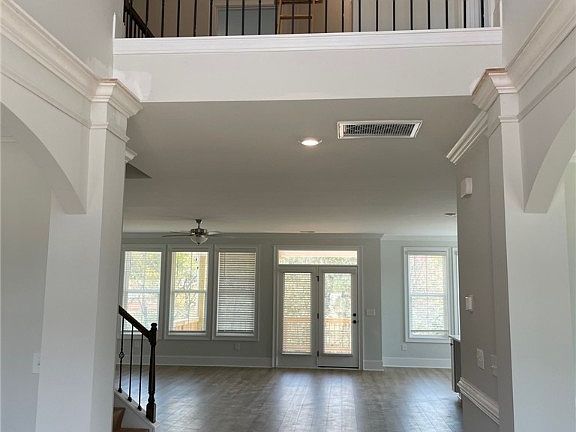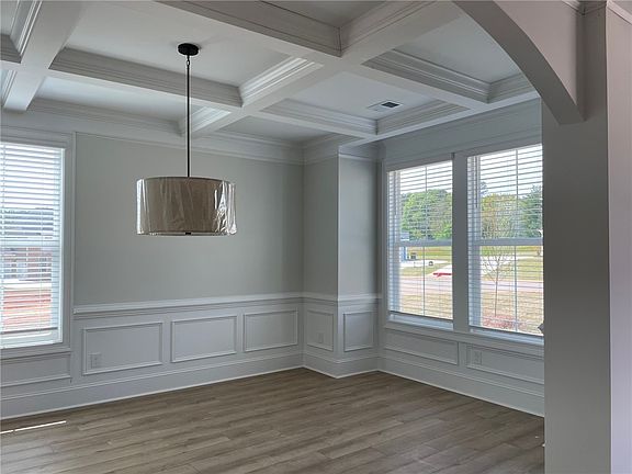 The Rutledge II is a beautiful five bedroom, three-and-one-half bathroom, three-car garage home with an open plan featuring luxury vinyl flooring on the main level. This wonderful home also has a full walk out, unfinished basement! The two-story foyer leads you to the formal dining room with a coffered ceiling and formal living room. The large great room with a gorgeous fireplace is open to the kitchen and eat-in area and has wonderful views of the pond behind the home. This space is perfect for entertaining friends and family or hosting those special holidays! The kitchen features a corner pantry, large island, quartz countertops, and stainless gourmet appliances. A guest suite with a full bath and walk-in closet is also located downstairs. Upstairs all secondary bedrooms have large walk-in closets. The primary suite features a sitting area, three (3) walk-in closets, a soaking tub, shower, and water closet. A large bonus room-perfect for a home theater/game room and laundry room with storage cabinets are also located upstairs. Smart home automation package and CAT 5 wiring makes this home ready for the future! Call today to make this beautiful home yours! Midway Farms