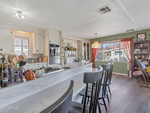 Wonderful Location with spectacular VIEWS!!! Very open floor plan. A real must see! Newly remodeled doublewide completely updated throughout. The views are from the living and dining room large picture windows. Everything new within last two years! NEW Double pane windows throughout with extra solar tint, top of the line wood grain vinyl plank flooring throughout, all interior has been painted. New interior baseboard trim. New kitchen and bathroom counter tops, sinks, and faucets, new wall gas oven. Electrical upgrades / GFI outlets, see SPDS.. New honeycomb blinds in living and dining room. New back door steps. Studio / Shed that is 12 x 20. Active 55 plus community, clubhouse, pool, gym, library. Hurry before it's gone! (Please know owner has health issues.) Separate desk area, and laundry, area or sewing, craft room, or study.