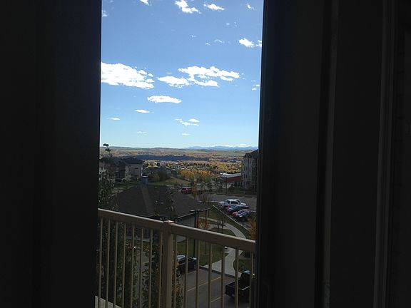 This 1 bedroom, top floor unit is perched on the top of Sunset Ridge and allows for a panoramic view of the mountains and amazing sunsets from the large south facing balcony! Enjoy all the amenities of a carefree lifestyle, and all the high end finishes of a luxury home (including onsite gym/workout space). Upgraded Flooring, zero carpet in unit. Upgraded Appliance package, Stainless Steel Upgraded Counter tops, Granite Upgraded Backsplash & Tile Upgraded Washer/Dryer, LG High Efficiency Upgraded Blinds, including block-out in the bedroom Includes Heat, Water, AC, Natural Gas (BBQ hookup included), Locked Storage Unit, Heated Secure Parking & All Maintenance Fees. This condo is in a prime location for commuting to Calgary with a short 15 minute drive to the Crowfoot c-train station and/or commuter buses leaving every morning to the city. 10 minutes to the lake and 1/2 hour to the mountains, this condo is the place to live if you love the outdoors.