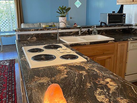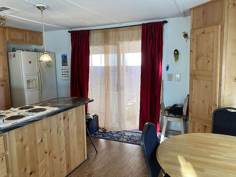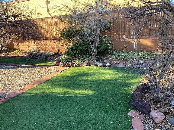 This is a charming 2 bedroom 2 bath double-wide mobile home in the most idyllic location in West Sedona with red rock views! Carport for 2-3 cars. Large shed in the backyard. You can walk to Natural Grocers, Sunset Park, the movie theater, the post office, multiple hiking trails, such as Airport Mesa Vortex, cafes and galleries. It will be hard to give up this little gem I have owned for 20 years, but I bought a horse ranch in Cornville and I can no longer live in two places, as horses take a lot of work! There are mature fruiting trees in the back yard that you can eat from! Two pomegranate trees, two plum trees, one cherry tree, one almond tree, one fig tree and your own vineyard. Yes, grapes that you can pick from your deck! There is also a small area to grow vegetables with organic dirt already in place. Everything is on irrigation so there is nothing to do except sit back and enjoy the red rock views and shade from the trees. There is also a beautiful smelling Jasmin plant, rosemary and rose bushes with flowers. The grass is Astro-Turf, so no mowing necessary. The house has a screened and covered outdoor veranda that is special and relaxing to sit in. There are two dog doors in the house and the greatest little park just up Sunset road with lots of grass for dogs and people to run around on! The neighbors on both sides are very friendly, yet quiet. The land rent is around $700 per month and includes most utilities except for electric. There is a small convection oven, microwave, fridge/freezer, dish washer, W/D, garbage disposal, central AC and heat. There is also an expensive Reverse Osmosis water filter on the kitchen sink, as Verde Valley water is high in natural Arsenic. Low VOC paint was used on the house. New water heater. Beautiful wood deck on the side of the house. The house siding is metal and must be redone with wood/vinyl within 4 months of moving in. I just gave a $20,000 price reduction for this. One man said my “yard was much better than the other houses for sale in Sunset Village.” The neighborhood is friendly and has a community center, pool, library, kitchen, holiday parties, weight room and place to keep RV's. You can partake if you like or stay secluded and never see anyone. That's what I like about it. It's very peaceful. And yet, if a pipe breaks and you need help with something you will have it. It's a sweet place to live. One small dog is allowed and two cats, I believe. You may have a housemate but he or she must be 45 years of age or older. It's a 55+ community, therefore you must be 55 years of age or older to buy it. 1973 Kirkwood. 40 x 24 = 960 spare feet I bought this house from my mother and it was very simple. All we did was go to the DMV to switch the title, just like for a car. Sunset Village Community has a $50 application/credit check you must fill out before purchase. (For out of town-ers): Sedona has been an open and thriving town and continues to be a healthy place to live. Call Robin for showings: Eight zero eight - two six eight - eight five zero one. Serious buyers only