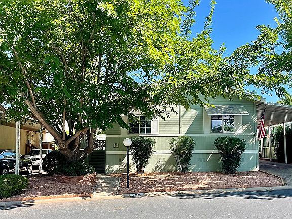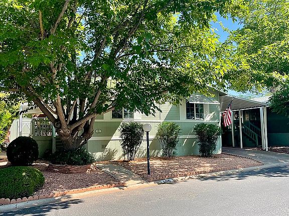 Welcome to this charming 2-bedroom, 2-bathroom home with a den. Nestled in a tranquil tree lined location in the community of Sunset Village in West Sedona. The heart of this home is its spacious kitchen, boasting ample storage which is perfect for culinary enthusiasts. This home features a spacious vaulted coffered ceiling in the living room with lots of windows which means lots of light! Relax in the cozy living room, ideal for gatherings and movie nights. The large primary bedroom features a large closet and master bathroom complete with a walk-in shower, garden tub and linen closet. Start your mornings on the inviting covered side porch, savoring a cup of coffee in tranquility. Don't miss this opportunity to make this delightful property your new home!