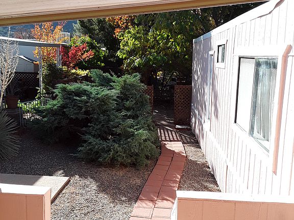 Please read all information below---including Read More section--- before contacting owner, thank you........... Please note: lot rent is $588/month, the comparable Sedona park is $1086/month. With views of Thunder Mountain and majestic red rocks, this 2/1 manufactured home rests in a spacious park-like setting. A large covered patio runs half the length of the house, and an additional tree covered private back deck/patio just off sliding glass doors of the quiet master bedroom. Lot rent is $588/month. There is a large separate 120 square foot stick built studio/workshop with full electric, lighting, skylight, built-in worktop, and much shelving at the end of a 2 car carport. This home is very easily maintained and is efficiently cooled by a swamp cooler in the summer and gas furnace in the winter. It has a W/D, D/W, refrigerator, gas stove, microwave, pantry, many additional storage cupboards and an entry closet. This particular lot is very quiet, spacious and private, surrounded by friendly, conscientious, family-like neighbors. You can be as private or social as you like in this setting. Shopping, fuel, theatres, hiking trails, bus-lines, banks, clinics, and much more are within blocks. The home is very clean, has been beautifully maintained with fresh exterior resurfacing/paint, and roof maintenance completed just months ago. 14 x 65 feet, plus large stick built shed, extra yard space, views, 1973, $42,000. Lot rent includes the Community Clubhouse (with many monthly functions), library, exercise room, pool, garbage, and more. You pay for utilities. Current solid appliances provide for very affordable monthly utilities, and are easily maintained. Price is somewhat negotiable. Seller financing may be available for a sizable down payment, and solid credit and income history. This 55+ community is very clean, neat and landscaped. You are allowed 2 cats and 1 dog no more than 20 pounds. Sublets aren't allowed, but roommates are******please check with management as there age specifications. Sunset Village... https://www.mhvillage.com/Communities/MobileHomePark.php?key=2006 ***Prospective buyers MUST get approval from the manager before purchasing a home************** After reading all information on home, please email, or text. ****Please do not enter property prior to making an appointment. Thank you