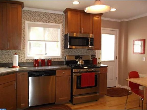 This tastefully updated end unit row is located in one of the boroughs most desirable locations. Plenty of updates have been completed during ownership, including a New Roof in 2016, New Kitchen and Floors, Remodeled Full Bathroom, Vinyl Replacement Windows, Solid Two Panel Wood Doors with gorgeous Glass Knobs, Gutters and Downspouts, Electrical Outlets and Switches, Chimney, Paved 2 Car Parking, Fresh Paint, and the list goes on. Enter from a covered front porch to a tiled entry that opens to a bright and cheery main level. You will be greeted by the high ceilings, fresh neutral paint and the many new windows that brighten and warm the home from the suns natural light. The front living room is complete with a deep coat closet and custom built-in shelf. The formal dining room offers views to the living room and is finished with a beautiful center light fixture and space for the large table and hutch. Through the dining room and into the kitchen is where you will find a completely remodeled eat-in kitchen with Solid Hickory wood floors, 42' Honey Maple cabinets, decorative glass tiled back splash over a beveled edge counter top, Stainless Appliances, gas cooking with built-in microwave, recessed lights, hanging light fixture and food pantry. An access door from the kitchen leads to the recently stained rear deck that overlooks a fenced in back yard with manicured landscape plus a walkway with gate entry to a recently paved two car driveway. Completing the main level is a convenient custom laundry space. Up the staircase to the landing is where you will find a remodeled Main Bathroom with stylish vanity, tastefully tiled floors, soaking tub/shower, extra cabinet space and a deep linen closet. Two spacious second floor bedrooms, both offering deep closet space, allow for your choice of main bedroom locations. The third floor bedroom features many windows, bump outs and closet space. Additional storage and utilities are located in the basement that has, separate rooms for storage, utility room with a 2016 serviced heating unit and hot water heater and two sump pumps. Access parking from a shared lane in back. Conveniently located within walking distance to the Train Station, Public Library, Shopping, Dining and closing to major access roads. All of this and a 1 year home warranty for peace of mind.