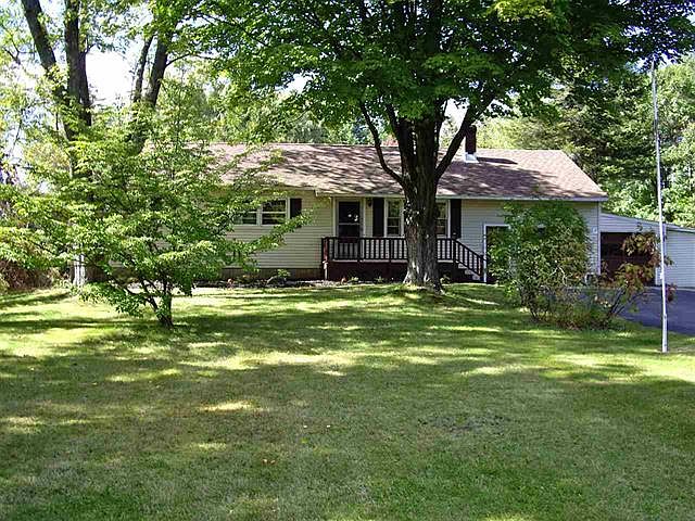 THIS HOME IS WAITING FOR ITS NEW OWNERS! This sweet ranch sits on a 1.53 acre private lot. Features include all new carpeting throughout, newly painted throughout, new bathroom vanities and flooring, newer architectural shingle roof, newer driveway, brand new septic system, sun porch, spacious decks on rear and front of home are freshly painted. Wall mounted propane heater in basement. New landscaping. Nice shed attached to garage for extra storage. NO STAR REFLECTED