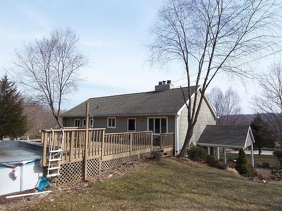 Fantastic location at the end of a quiet cul-de-sac, this hi-ranch, with contemporary flair, offers great entertaining spaces inside and out. Located on 2.46 sprawling acres, the grounds are ideal for many outdoor activities. Two levels of living space. The first level offers a large family room with a fireplace and access to the private patio. The laundry room, access to the two car garage and a full bath round out the first level. Upstairs is a contemporary, open floor plan offering hardwood floors throughout most of the rooms. The updated kitchen offers quality cherry cabinetry, granite counters, stainless steel appliances and tile floor. The living room with a vaulted ceiling, fireplace and natural light opens to the dining room. The master bedroom suite is large and offers a walk-in closet and full bath with shower. Two additional bedrooms and a full bath complete the home. The backyard is amazing with a massive deck overlooking the private and serene backyard. There's so much entertaining space throughout this beautiful home.