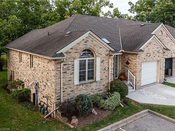 WALKOUT BASEMENT - BACKS ONTO CATFISH CREEK - ATTACHED GARAGE If youre looking for a central location and hands-off living, this end unit condo located in the heart of charming Aylmer is ideal. Enjoy the quiet backyard which backs onto Catfish Creek and Kinsmen Park. The main floor features an open concept kitchen, dining area, and living room with access to a large upper deck. Retreat to a large primary bedroom complete with a 4-piece ensuite and walk-in closet. A second bedroom/office, a 4-piece bathroom, and a space for a main floor laundry (currently no hookups) complete the main floor. The fully finished lower level is a walk-out with a patio off the rec room, a laundry room, a large third bedroom, and a 2-piece bathroom. The lower level also offers lots of storage space in the utility room and laundry room. Condo fees include snow removal, landscaping, roof, water, property management, exterior repairs, and maintenance. Other notables include; the hot water tank is owned, the main bathroom offers a walk-in tub (Bathfitters), composite deck (2017), new fridge/stove (2022), concrete driveway and sidewalk (2019)