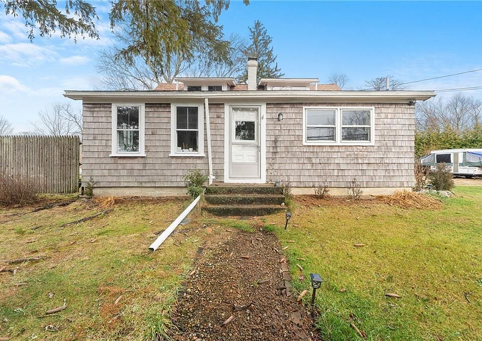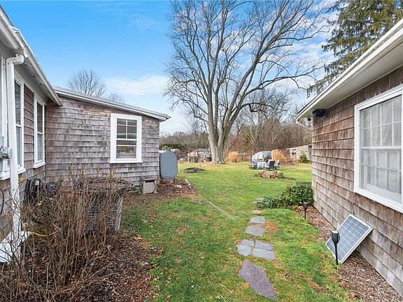Look no more for the quintessential rustic home located in Exeter, RI. Easy access off the highway, and hidden away by the natural Shrubs and Greenery as well as a fully fenced in yard for privacy. This home is full of its original charm with a woodstove, farmers sink, built-ins, raw edge wood features, wide plank flooring and bright and inviting cozy rooms. Listed on public record as a 2 bedroom, the 2nd floor does offer an additional 2 rooms--could be use as guest room(s), an office room, an art or yoga studio, or simply used for storage. The current owners also convered the single car garage into additional living space perfect for a kids playroom, home workout gym, mancave, movie theater room, or a pretend summer camping cabin for the kids! Garage can easily be converted back by re-installing an overhead garage door. Current owners enjoyed many spring and summer seasons of vegetable gardening as well as an array of perrenial flowers. Kick off the new year with a new home in which to make your own. Subject to seller finding suitable housing.