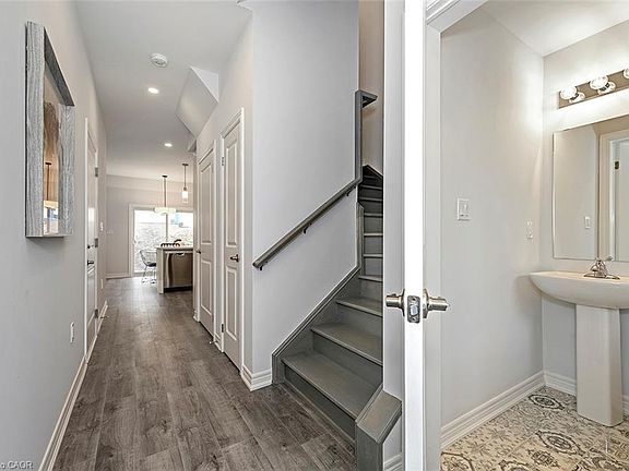 WELCOME TO HAMPTON PARK! THIS FULLY FINISHED INTERIOR TOWNE features 1430 SqFt of living space with a stunning BRICK, STUCCO & STONE front exterior. Open the door & “glorious grey” VINYL PLANK FLOORING leads you to a WIDE OPEN CONCEPT LIVING, DINING & KITCHEN AREA. A DETAILED CHEF’S KITCHEN invites you to explore & enjoy the “well thought out” details by our DESIGN TEAM boasting UPGRADED WHITE SHAKER STYLE CABINETRY with SOFT CLOSE DOORS, SUBWAY TILE BACKSPLASH, DEEP UPPER FRIDGE CABINET & STONE COUNTERTOPS that wrap around and are completed with a BREAKFAST BAR. Perfect for kids doing homework or an extension of the ENTERTAINMENT SPACE. This UNIT is WIDER than most TOWNES & allows for a COZY SECTIONAL & additional pieces. When it’s time to relax, head up the OAK STAIRS to 3 SPACIOUS BEDROOMS & a PRIMARY BEDROOM worth closing the door & escaping for a while. A LARGE WALK-IN CLOSET & an ENSUITE with full size GLASS FRONT SHOWER complete with SHOWER NICHE, POTLIGHT & STONE COUNTERTOPS. This TOWNE is ready to be YOURS in a SNAP… move in “IN 30, 60 or 90 DAYS!”