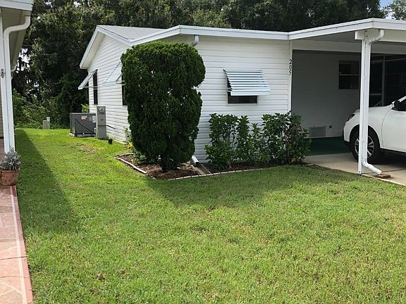 This beautiful two bedroom, two bathroom home with two lanais is a must see in The Gardens! All new laminate flooring in the bedrooms and living room and vinyl plank flooring in the kitchen done in 2018. New roof and air conditioner in 2015 and tie downs replaced. This is a 1999 Jacobsen with a double driveway and 1140 square feet of living space not counting the two lanais. This home comes with all appliances and the washer and dryer are inside of the home. Two walk in closets with two skylights. The Gardens is a 55+ community with a huge pool, hot tub, exercise room, library, card room, craft room, ballroom, full kitchen, shuffle board courts, tennis courts and a horseshoe area. Lot rent for this home is $706 per month and with that you get 2 HD boxes, 200 cable channels, high speed internet, mowing, edging, trimming, and all the amenities at the clubhouse.