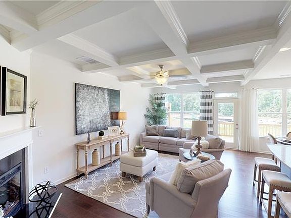 Loft floor plan *RECEIVE INCENTIVES UP TO $10,000 BUYER BONUS PLUS PAID 1ST YEAR HOA or Side/Side SS Refrigerator PLUS BLINDS & FENCE Closing on/before 7/15/20*. New construction, maintenance free community located walking distance of Silver Comet Trail. COFFERED CEILINGS, QUARTZ Iced White counter top, GE STAINLESS STEEL APPLIANCES, HARDWOODS on main, HARDWOOD STAIRS, 42" CABINETS, LOFT/REC AREA on 2nd level, master suite w/ TRAY CEILINGS, master & secondary bath come w/ TILED BACK SPLASH & FLOORING. Pictures are of similar model of the same floor plan. HANOVER PLAN
