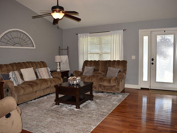 :IF YOU WANT A REALLY NICE HOME COME TAKE A LOOK! This beautiful home has been well cared for and is tastefully decorated. Nice open floor plan with vaulted ceiling in the living room, dining and kitchen. Beautiful custom cabinets in the spacious kitchen with a large island. Hardwood floors in living, dining and kitchen. If you like the outdoors come sit on the deck and enjoy your fenced in backyard and watch the deer in the field behind the home.. The yard is beautifully landscaped.