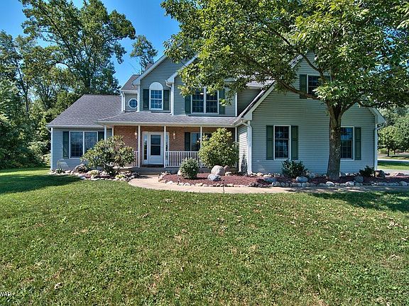 Exceptional Home! The main level features a grand two-story foyer w/turned staircase and elegant tile flooring open to the Formal Living and Dining Rooms, both of which have beautiful hardwood flooring. Large Family Room w/brick fireplace and hardwood floors is open to the exquisite kitchen w/center island, breakfast area, SS appliances and a large pantry. The second story features a luxurious master bedroom suite with a newly updated bathroom complete w/ a full tile shower, jacuzzi tub, double sinks & skylights. You will also find 3 additional spacious bedrooms and a full bath. Other highlights include central air, an unfinished basement and 2-car garage. This corner lot provides a peaceful yard w/mature landscaping, fire pit, new back patio and great views! Move in condition!