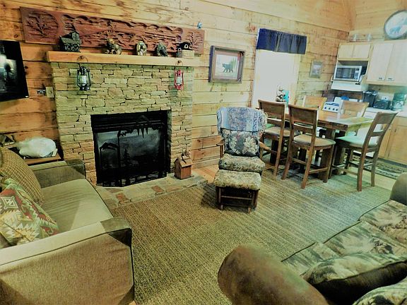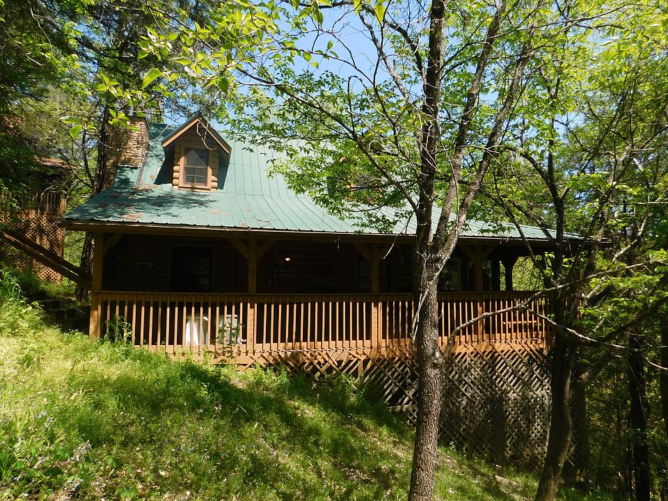 BACK ON THE MARKET! This cabin is turn key. ''A Hearts Desire'' is a custom-built cabin with great amenities, not to mention great location. Minutes from I 40 and the Sevierville convention center, only 20 minutes from Dollywood and Splash Mountain. This 2 bedroom, 2 bath unit that sleeps 8 is charmingly rustic in its wooded setting. On the main level you will find a small, but fully equipped, kitchen. A bedroom with a queen bed and a bunk bed with full on bottom and twin on top. A full bath including a shower/tub combo, and a living area with queen sofa sleeper, a twin sleeper sofa, chair, and a flat screen TV. In the upper loft area level, you will find an additional queen bedroom with TV, also with a full bath shower/tub combo. This loft area bedroom overlooks the living area, and has a small widows walkway. The back deck has a screened in porch that houses the hot tub, and offers rocking chairs, perfect for rocking your cares away in this quiet, peaceful, and serene setting. While the front porch offers a different perspective on the wooded views, there are 19 steps leading down to the entrance of the cabin from the parking that will comfortably accommodate up to 3 vehicles.
