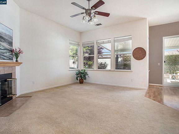 Live directly across from the Clubhouse, pool, spa and many Summerset amenities. This light and bright home offers lush, mature landscaping and a variety of gardens. Private, corner lot location with no direct rear neighbor. Easy access with no-steps-to-entry. The front porch welcomes you to home's interior with open floor plan, and high ceilings. There is a large formal living/dining room area and a chef's kitchen that opens to the family room with cozy fireplace. Retreat to a spacious master bedroom suite where the bath includes a large soaking tub. Adding to the privacy of this home is the stucco wall surrounding the perimeter. Fully enclosed patio provides pet safety. This home is at the center of this active 55+ resort community and next to the Brentwood golf course. Nearby are shops, restaurants and John Muir Health & Urgent Care Center.