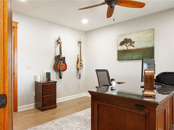 You won't want to miss out on this home!! It has had so much done to it in the past year! New wood floors on main & up, all lighting inside & out with LED lights, paint, kitchen cabinets painted, new trim, gas grill hooked up to natural gas, wired for dog fence & robotic mower, 2 new water heaters, new smoke alarms & CO2 detectors, master closet upgraded, new faucets in kitchen & laundry area, new vanity in 1/2 bath, redid the retaining wall and tiled underneath it. Home also features My Q Smart garage door opener, fire pit area, heated garage, instant hot water, granite counter tops, stainless steel appliances, kitchen pantry, central vac & sweep and a tuck under garage. Enjoy sitting on the newly stained deck overlooking the #8 green in beautiful Bos Landen Golf Course. Come take a look and make this 4 BR home with a finished walk out basement yours!!