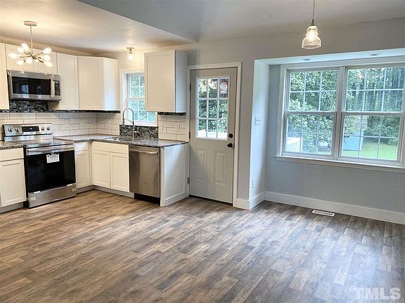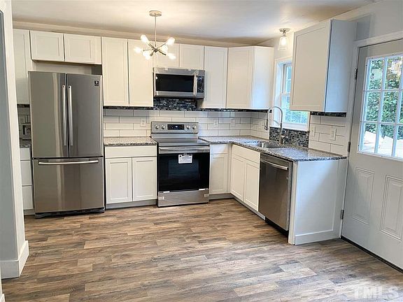 No HOA!! No City taxes!! This newly renovated home features an open floor plan, vaulted ceilings in the living room and master bedroom, and lots of privacy on a partially wooded 1.28 acre lot. It has all new flooring, new cabinets, tile backsplash, new stainless steel appliances, granite in kitchen and bathrooms, new fixtures, new tile flooring and tiled in showers. Storage shed conveys. All of this and only a quick 7 minute drive to thriving downtown Clayton! $1500 paint allowance!!!!!