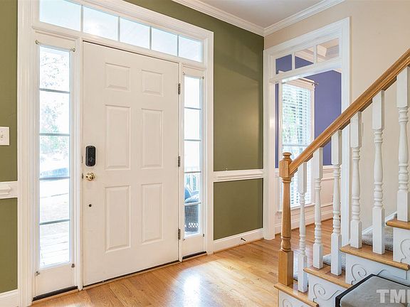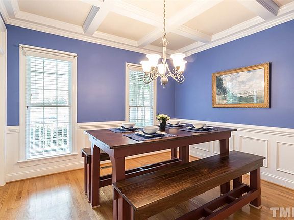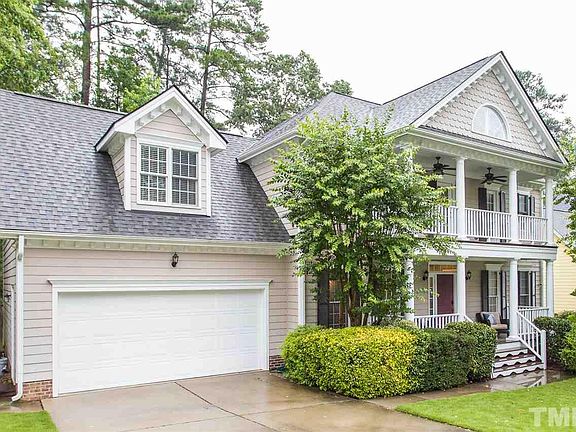 Apex living at its best. Charming curb appeal with a front porch and balcony. SS appliances and granite counter tops. Hardwood floors throughout open downstairs floor plan. Large, flat, and fenced back yard with wooded privacy buffer. 4 large bedrooms, loft and bonus room. Spacious master bedroom with door to balcony. Eat-in kitchen with island and ss appliances. Loaded with custom woodwork & trim including coffered ceilings and wainscot. A deck plus patio for outdoor living. Community pool and tennis.