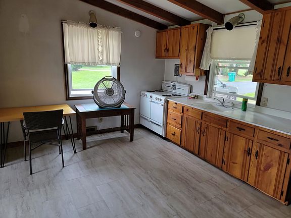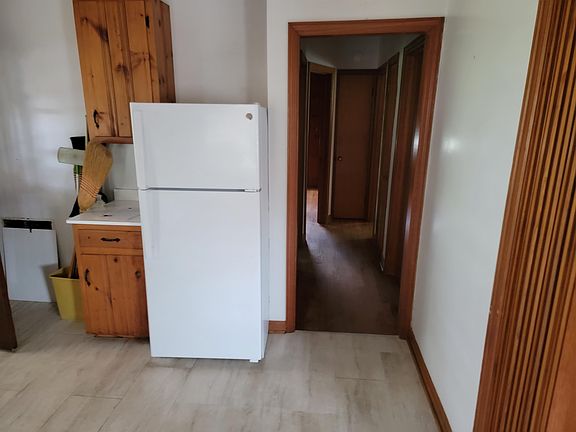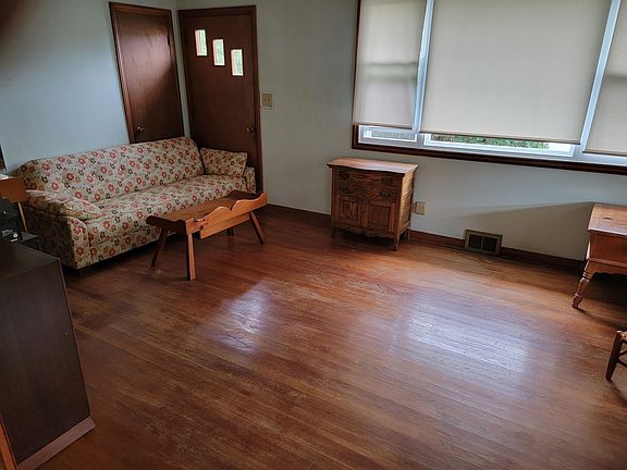 Ranch home, 2 bed, 1 bath. Hardwood floor throughout. Knotty pine kitchen cabinets and walls in one bedroom. Cozy, vaulted ceilings with exposed beans. Full walkout basement. Close to Wilbur Pence Middle School on the corner of West View and Thompson St. Hardwood trees in rear yard for shade.