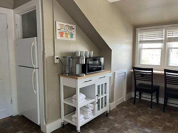 In this newly furnished studio, the utilities, heat, sewer, water and garbage are all included in this freshly painted newly carpeted studio apartment on the third floor of a quiet historic seven Plex. Laundry is located in the basement and this property is close to the Aldi's grocery store. Iron and Grain coffee house is right across the street. We sit 1.5 miles away from Genesis East and Genesis West and a short walk to Palmer chiropractic College and Saint Ambrose University. One of the seven units in this 1860 built building belongs to our management team with ring cameras on front and back. All units are fully furnished and we are looking for midterm rentals, but will entertain six months to one year leases as well. We are looking for weekly and midterm rentals, but we will entertain six months to one year leases as well. This is a no smoking building