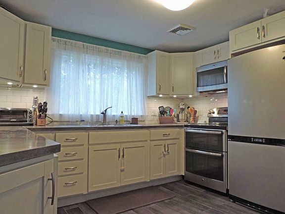 Welcoming, updated & upgraded 3 bedroom, 2 full bath, cape style home on a fantastic lot. This charming house also boasts a fully finished basement that doubles the living space, along with a gorgeous rear patio and entertaining space. Enter into your spacious dining space, with enough room for a formal dining area or living room. There's hardwood floors and double hung windows and an open floor plan through to the kitchen, which could also have a dining area. The Stainless appliances, matching sink and fixtures, custom polished concrete counter tops, and a modern design, makes meal prep enjoyable. The main floor Master bedroom has engineered wood flooring, a ceiling fan with lighting, double hung windows, and a closet that joins the Second bedroom. This bedroom, which is an adorable nursery, has neutral colored wall to wall carpet and double hung windows which provide plenty of natural light. The Full Hall bath has an updated vanity, lighting and custom ceramic tile walls and flooring. Step up to the large third bedroom, with a huge storage closet and engineered wood flooring, currently being used a home office. You'll be amazed at what you find downstairs in the fully finished basement. The owners have created a large family room, with a dining/game area along with a custom built stone~front bar, laundry room and full bath with an amazing spa like, glass enclosed, shower. This entire area is perfect for lounging or entertaining and watching the game or your favorite shows. The zen~like bath room has a walk in shower stall, stylish tile and stone and modern enclosure. The laundry area has plenty of work space for stacking, sorting, folding, hanging and storing. This addition was meant for making this home so comfortable that you'll never want to leave. From the lower level or from your kitchen, walk out to your patio where you can take in the fresh air, relax and enjoy the privacy of your own oasis. Storage is no issue with a large separate garage for parking your car or storing your stuff. Take a look today, as this home is completely ready for you to move right in.
